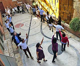 Chile group doing paneurythymy in courtyard