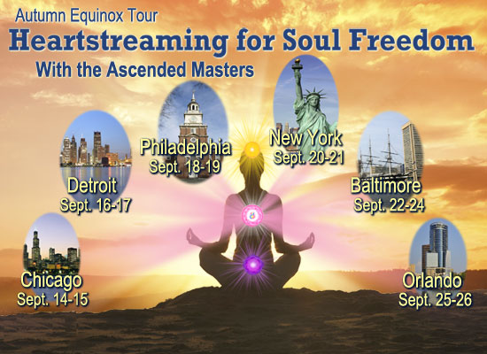 The ultimate freedom is freedom of the soul. The ascended masters, through their messenger David C. Lewis, will delve into the mysteries of soul freedom in this six-city tour through Chicago, Detroit, Philadelphia, New York, Baltimore and Orlando. Join the rolling momentum of light flowing through hearts receiving and anchoring a new soul freedom in each city. Come in person to any cities close to where you live and listen on the broadcast throughout the tour.